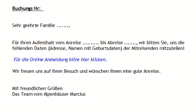 Für einen Schnell‐Check‐In bitten wir Sie uns die Daten der Gäste (Namen, Adresse, Geburtsdaten) bereits im